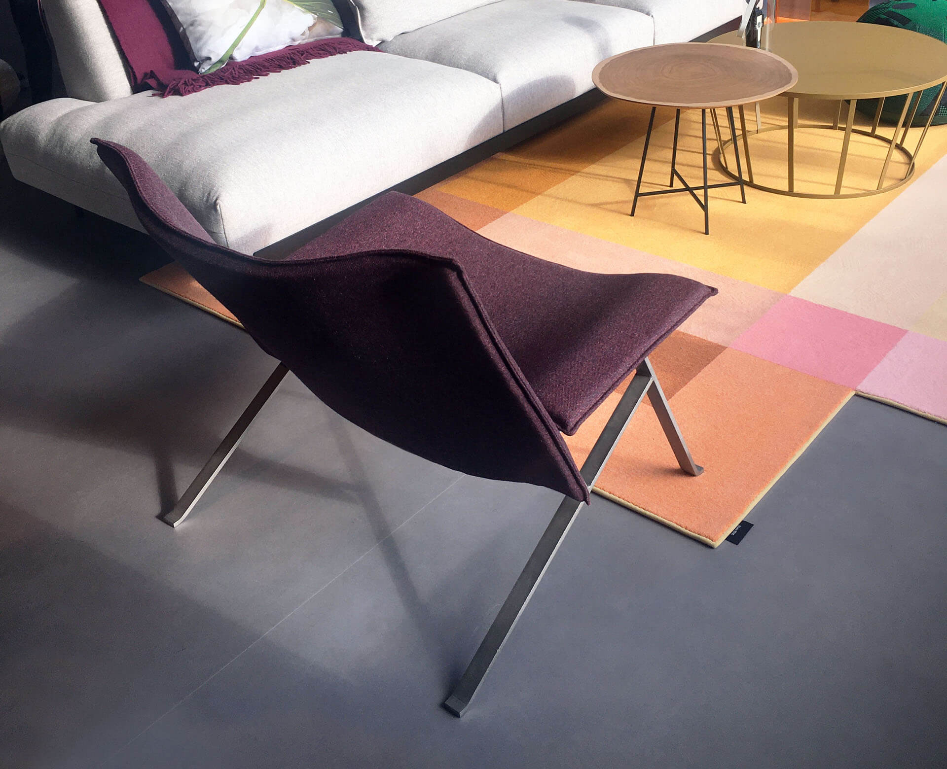 The DUNE easy chair is another design in the making. Its waved seat and back are inviting and embracing. Here executed in fabric but also great in rich leather.